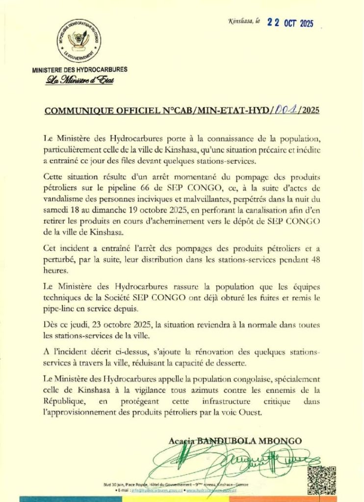 9ème Niveau Immeuble du Gouvernement, Boulevard 30 Juin – Place Royal Kinshasa/Gombe
